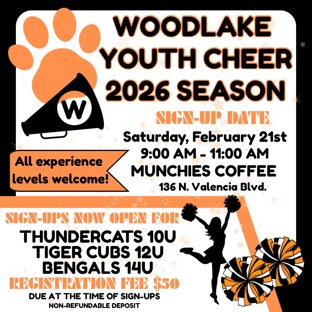 Ages 5-14 can sign up for Woodlake Youth Cheer! For more information please contact: woodlakeyouthcheer@gmail.com